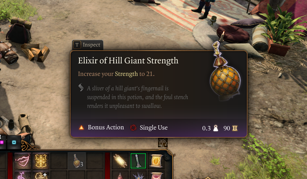 The Club of Hill Giant Strength is an uncommon club with the following stats: 5-8 Damage In the corner of the room is a toppled-over bar stool. A community all about Baldur's Gate III, the role-playing video game by Larian Studios